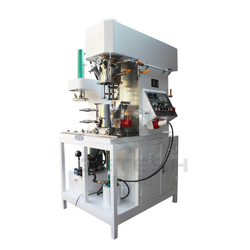 雙行星動力混合機是一種新型且對多種混合液體、粉體進行攪拌、溶解、分散、均質(zhì)的攪拌設備。該設備配有高速、低速、活動刮板部件,低速攪拌部件采用行星齒輪傳動,攪拌槳在公轉時也自轉,使物料上下及四周運動,從而在較短的時間內(nèi)達到理想的混合效果。高速分散/乳化部件與行星箱一起公轉,同時高速自轉,使物料受到強烈的剪切與分散混合,罐體內(nèi)壁為大型立車精加工,再經(jīng)大型拋光機自動拋光,確保行星箱上的活動刮刀在旋轉時,把罐體內(nèi)壁上的物料完全刮掉,其混合效果是普通混合機的幾到幾十倍。廣泛應用于電池、有機硅膠、高端油墨、染料、粘膠劑、高端高粘度涂料等化工產(chǎn)品的生產(chǎn)。
